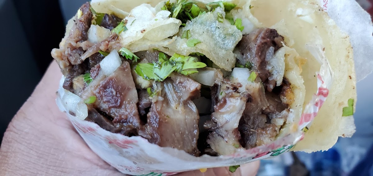 It was lunch time, and we hadn't had breakfast--and we were hungry. We didn't want any fancy, just some food--quick before we came unglued. We had never been to this restaurants or any of its sisters. It did the job--fed us rather inexpensively. We went inside the restaurant to order, and since no one else was inside (during Covid times) we ate inside. I had a Chicken Tostada, and Flan. My partner had a Beef Taco with Guacamole. My tostada was OK, and flan was good.